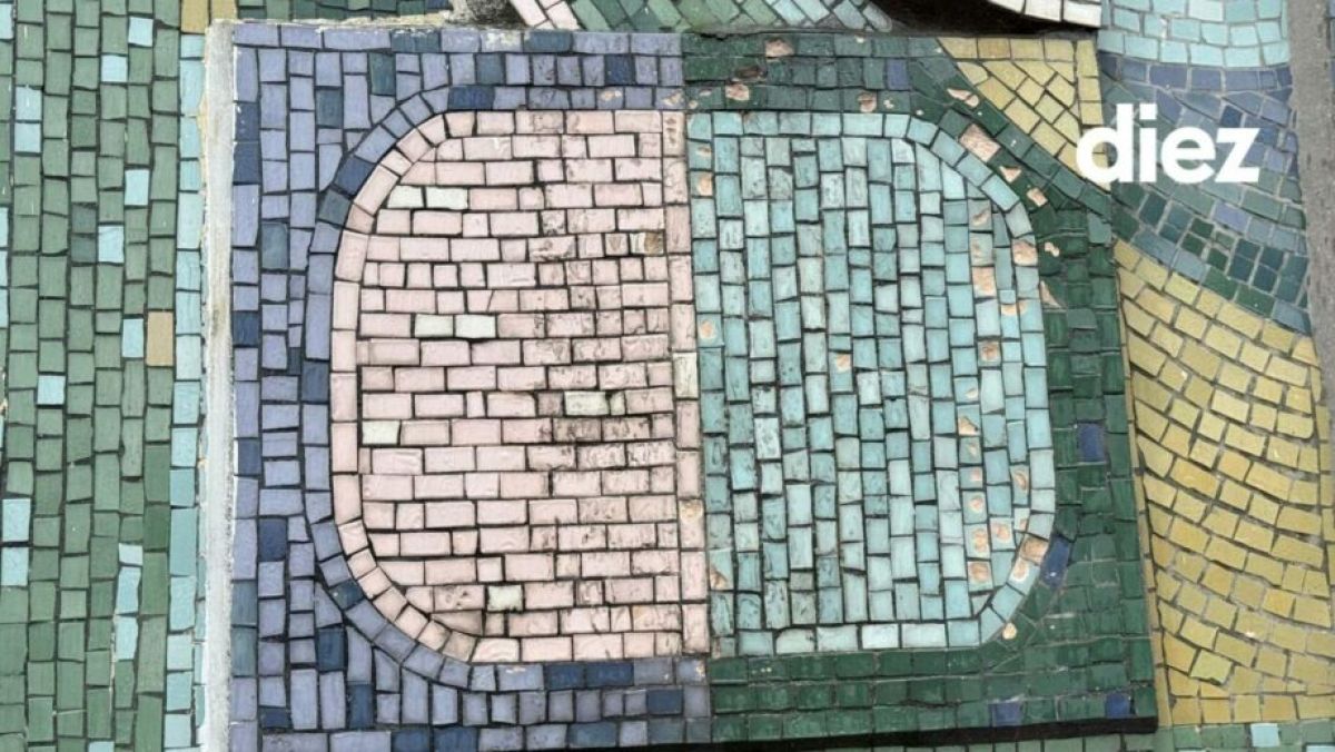 Работа выполнена в одной цветовой гамме: преобладают желтые, зеленые и голубые оттенки. Мы не нашли информацию о материале, который использовал автор, но судя по внешнему виду — это смальта (цветное, глушеное стекло, изготовленное по специальной технологии — ред). Ей мастера отдают предпочтение из-за того, что она яркая, водостойкая, морозостойкая и не теряет цвет со временем.