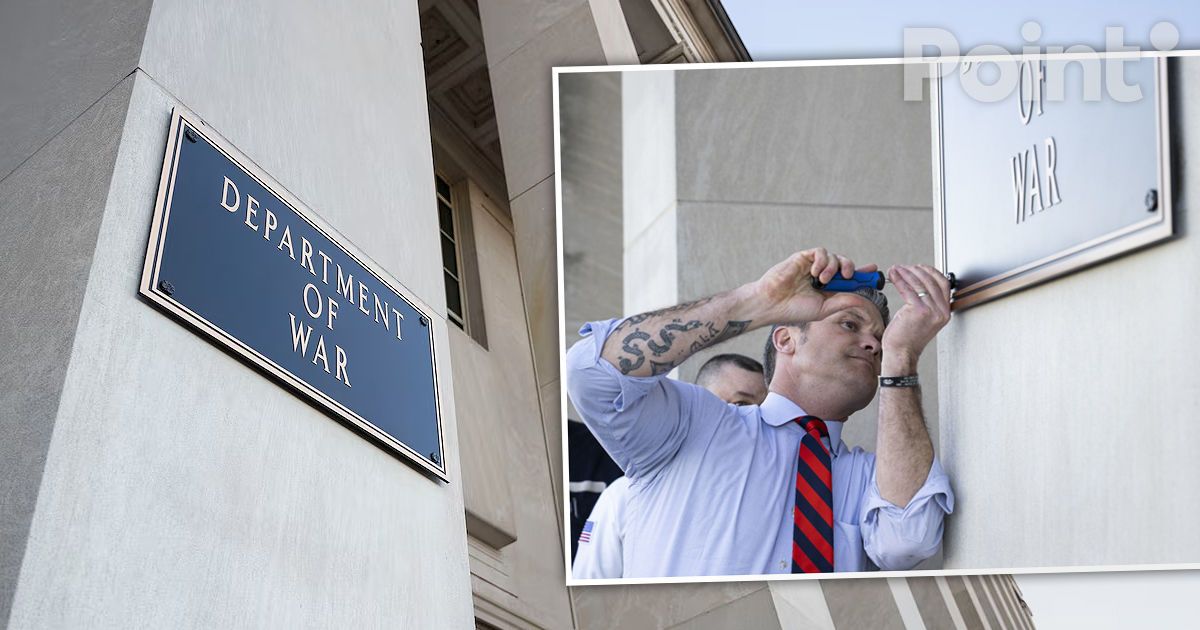 Шеф Пентагона Пит Хегсет поменял табличку на здании ведомства в Вашингтоне после того, как президент США Дональд Трамп переименовал американское министерство обороны в министерство войны.