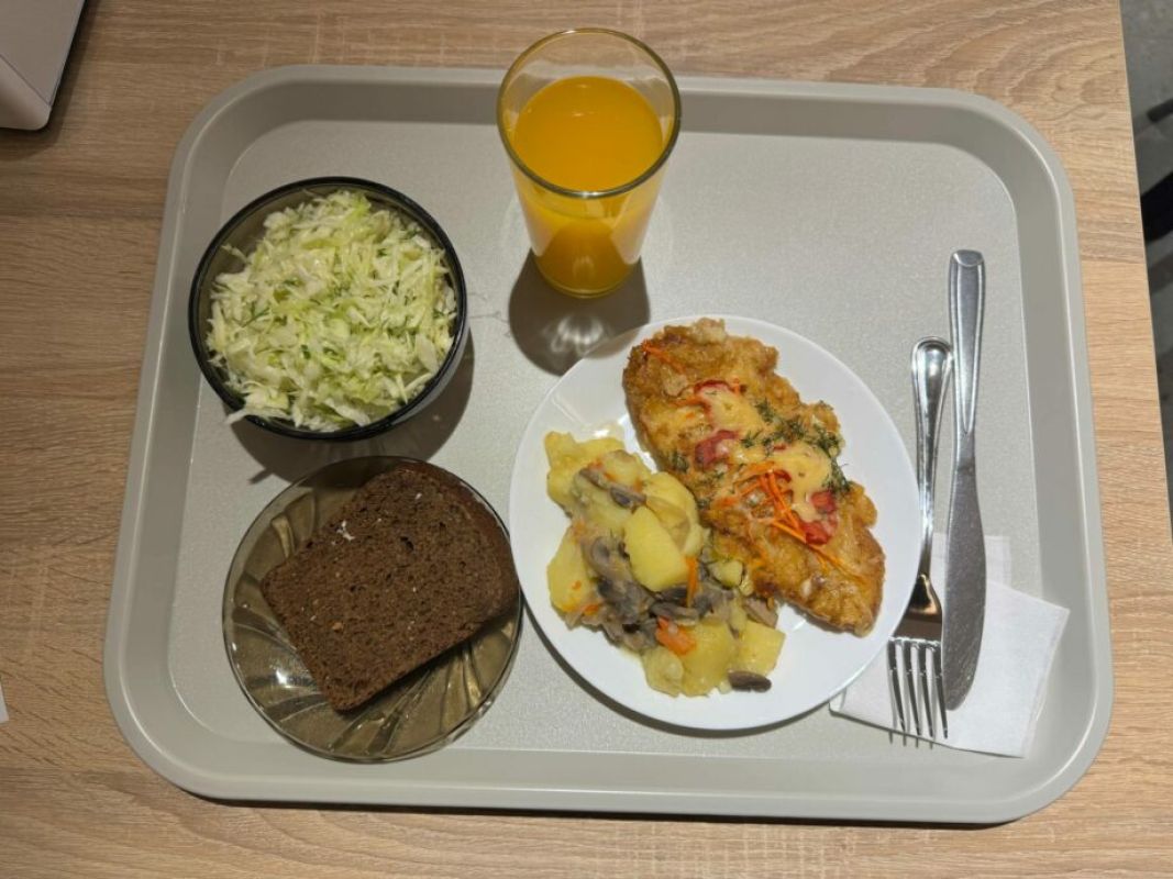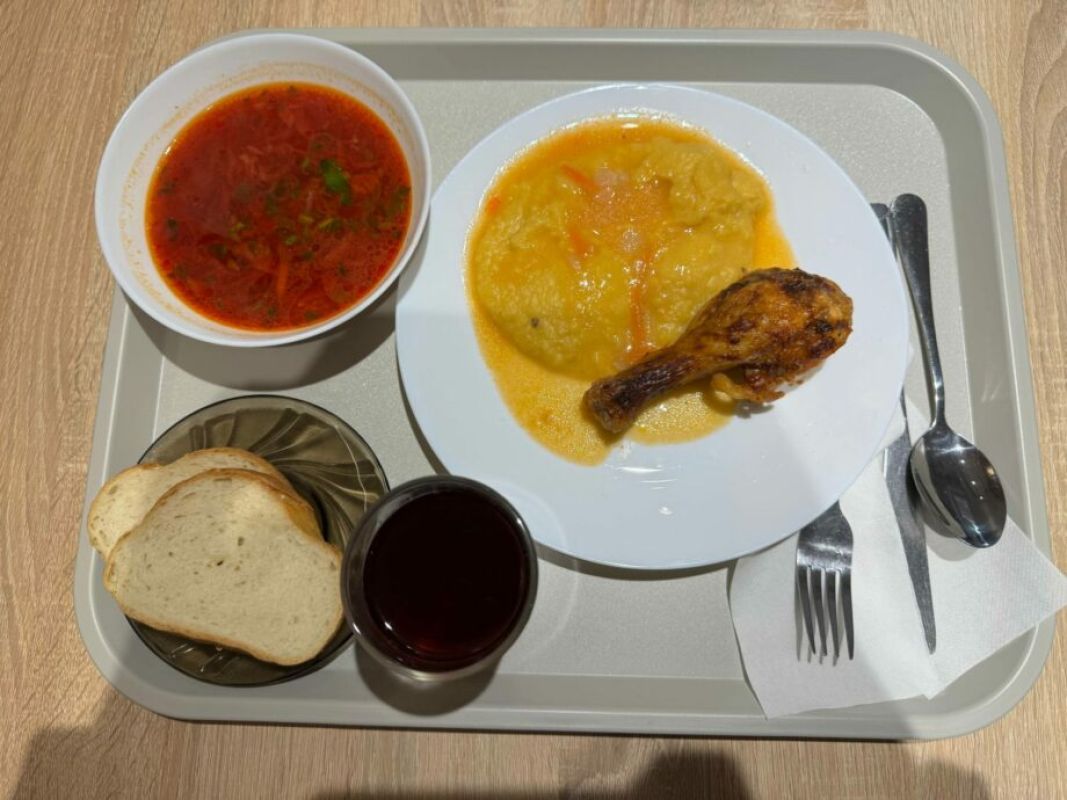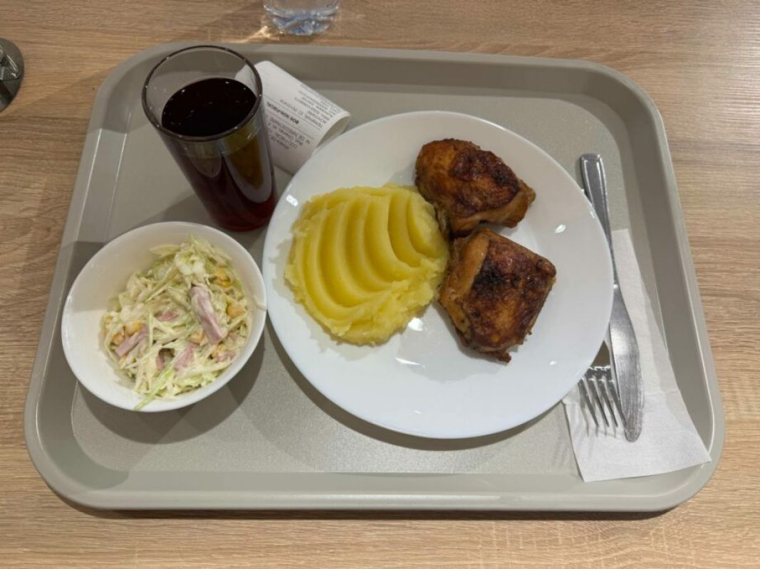 Меню столовой предлагает различные первые блюда, гарниры, мясо, рыбу, салаты и напитки. Оно довольно разнообразное. Не все блюда, указанные в меню можно заказывать ежедневно, так как предлагаемые обеды могут меняться.