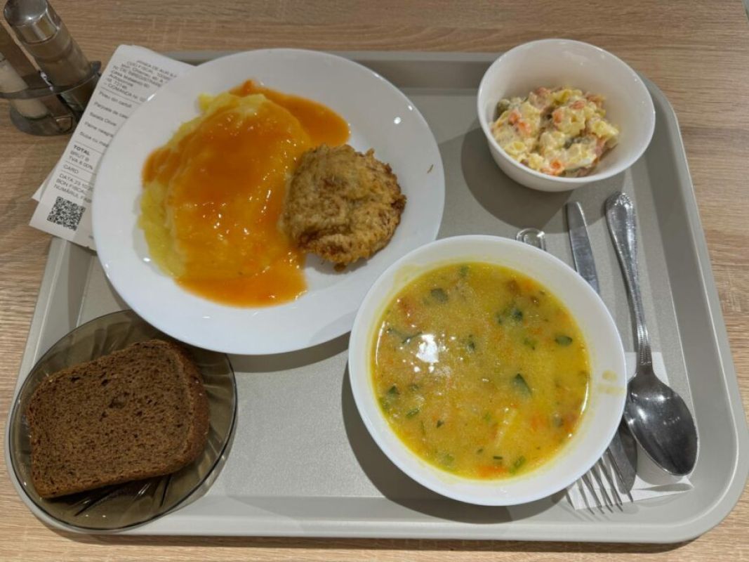 В этот день в терминале закончилась бумага, поэтому на чеке нет точных цен на отдельные блюда. Все вместе стоило 77 леев .