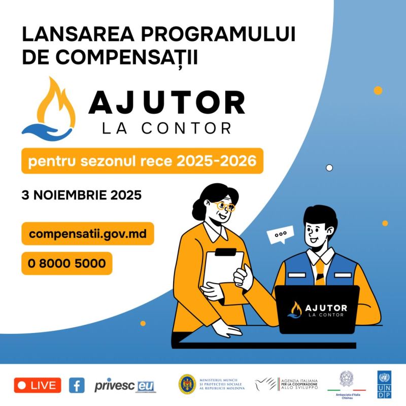 3 ноября 2025 года, Кишинев – С сегодняшнего дня бытовые потребители могут зарегистрироваться в государственной программе «Ajutor la contor» на платформе compensatii.gov.md. Правительство предлагает компенсацию за энергоносители на отопительный сезон 2025–2026 годов, который включает период с ноября по март.