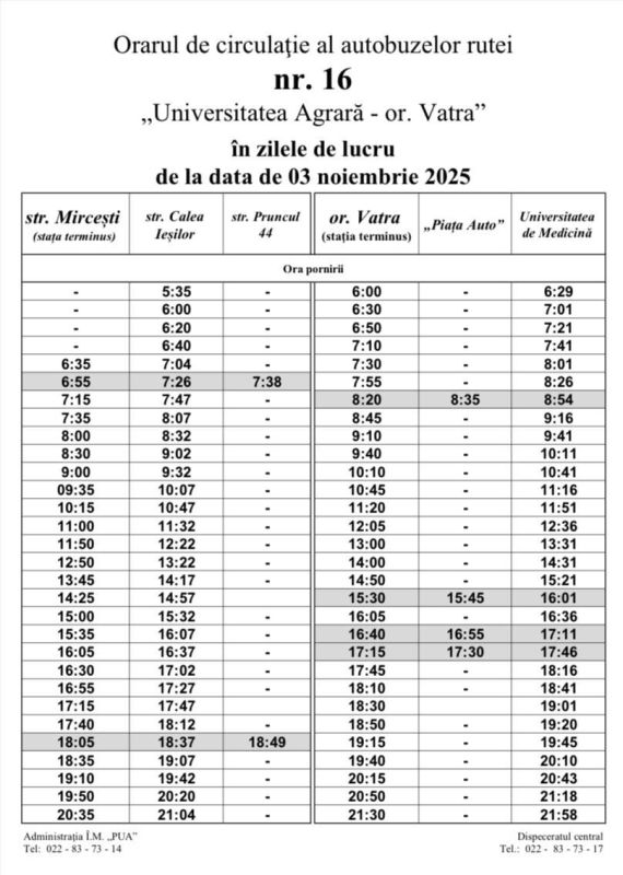 Начиная с 3 ноября 2025 года, в рабочие дни пригородный автобусный маршрут № 16 «Сельскохозяйственный университет – г. Ватра» возвращается к стандартному маршруту, с изменением графика движения.