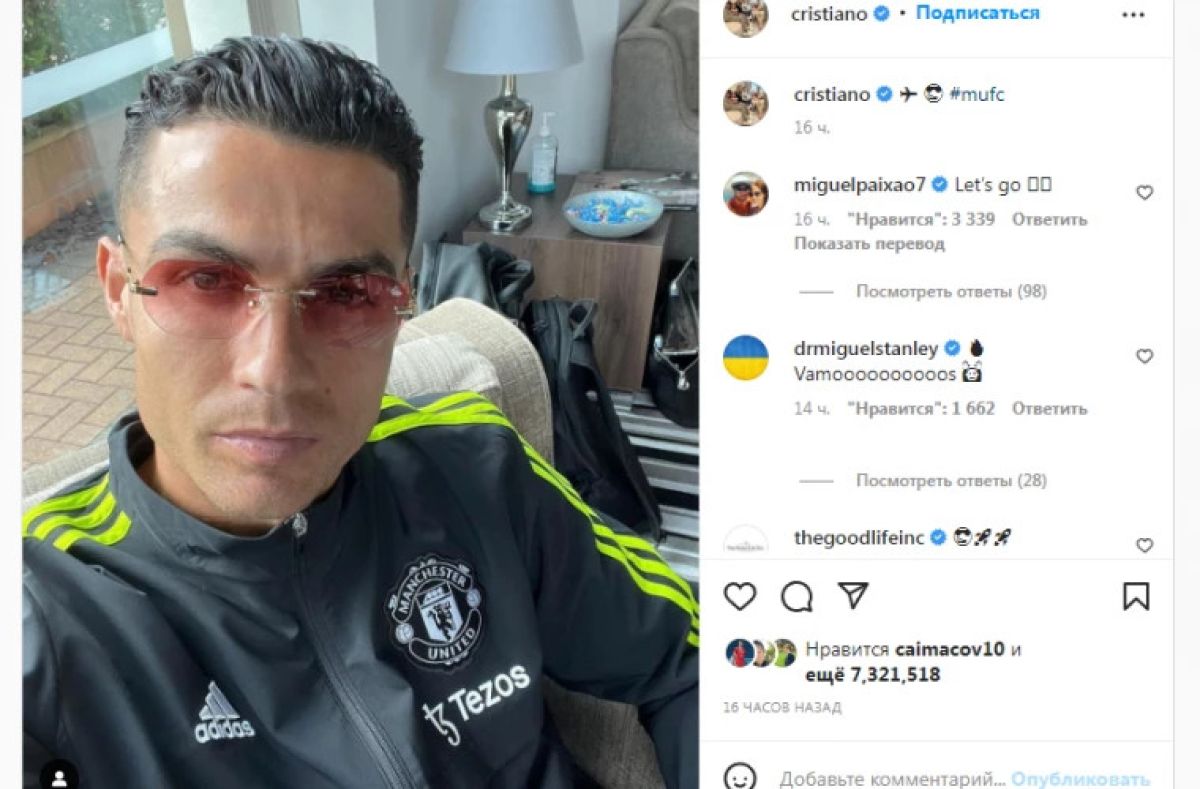 Публикация вызвала повышенный интерес у подписчиков Роналду: всего за 16 часов фотография набрала более 7 миллионов лайков, пишет moldfootball.com