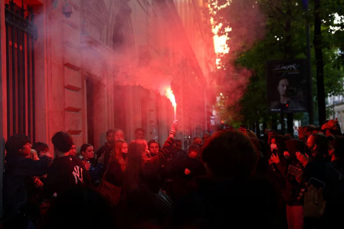 Студенты с фаерами заблокировали вход в одну из парижских школ, также в некоторых других регионах страны школы были заблокированы.
