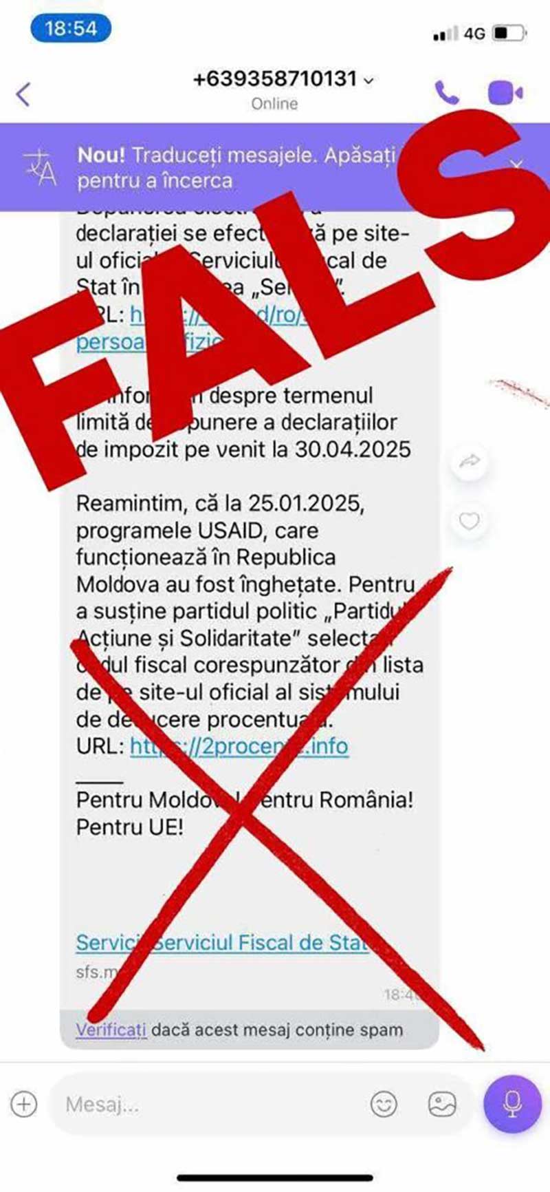 Жители Молдовы получают сообщения с просьбой «поддержать PAS» и направить 2% от подоходного налога в пользу правящей партии.