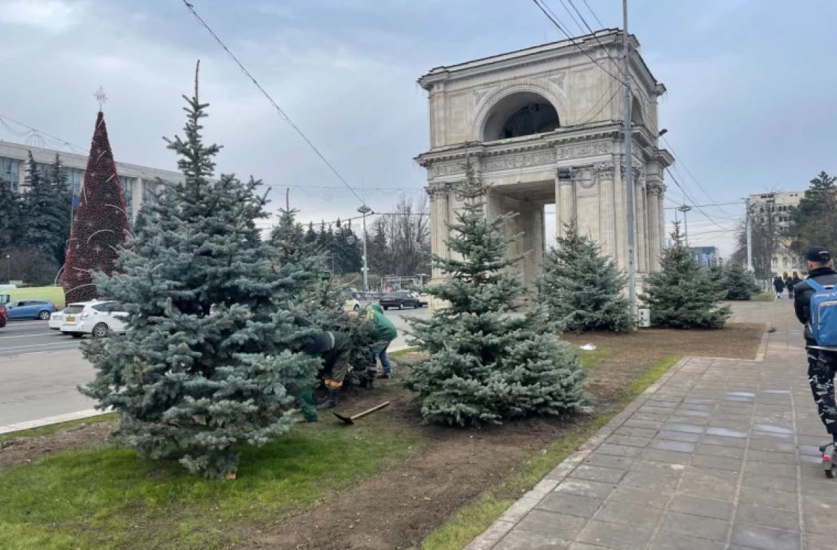 Агентство по охране окружающей среды выдало разрешение на вырубку елей в районе парка Рождественского собора 20 декабря. На следующий день были срублены четыре высокие ели возле Триумфальной арки. Ранее мэрия Кишинева официально заявила, что ели были «деформированы» — причина, послужившая для их вырубки. Представители «Зеленых насаждений» заявили, что это было сделано из-за того, что они потеряли «эстетичный вид» или «эффект декора».