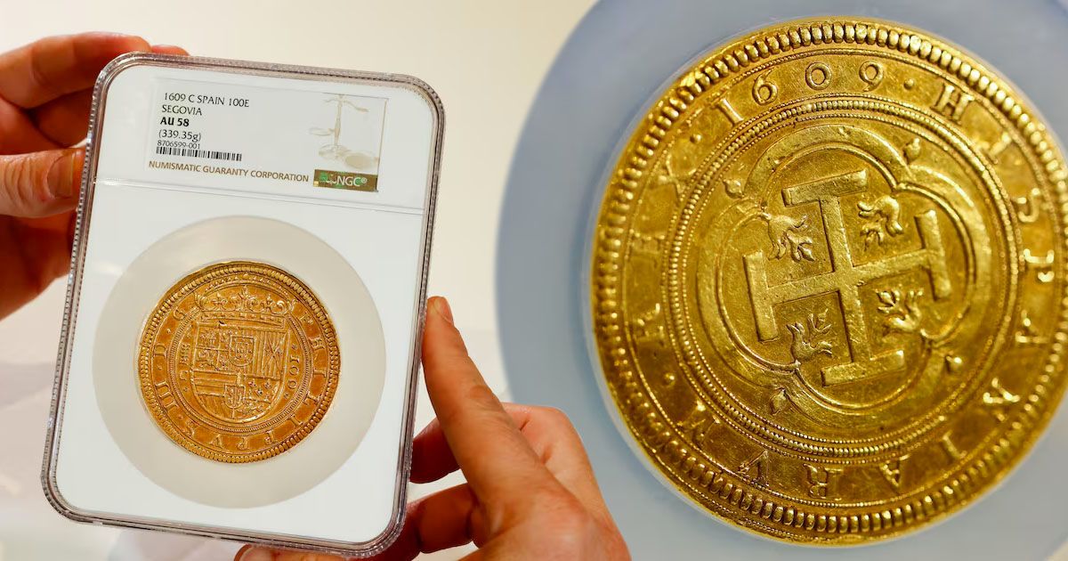 Испанская золотая монета номиналом 100 эскудо, впервые отчеканенная в 1609 году, ушла с молотка за 2,8 млн швейцарских франков ($3,5 млн) и стала самой дорогой монетой из когда-либо проданных на европейских аукционах.